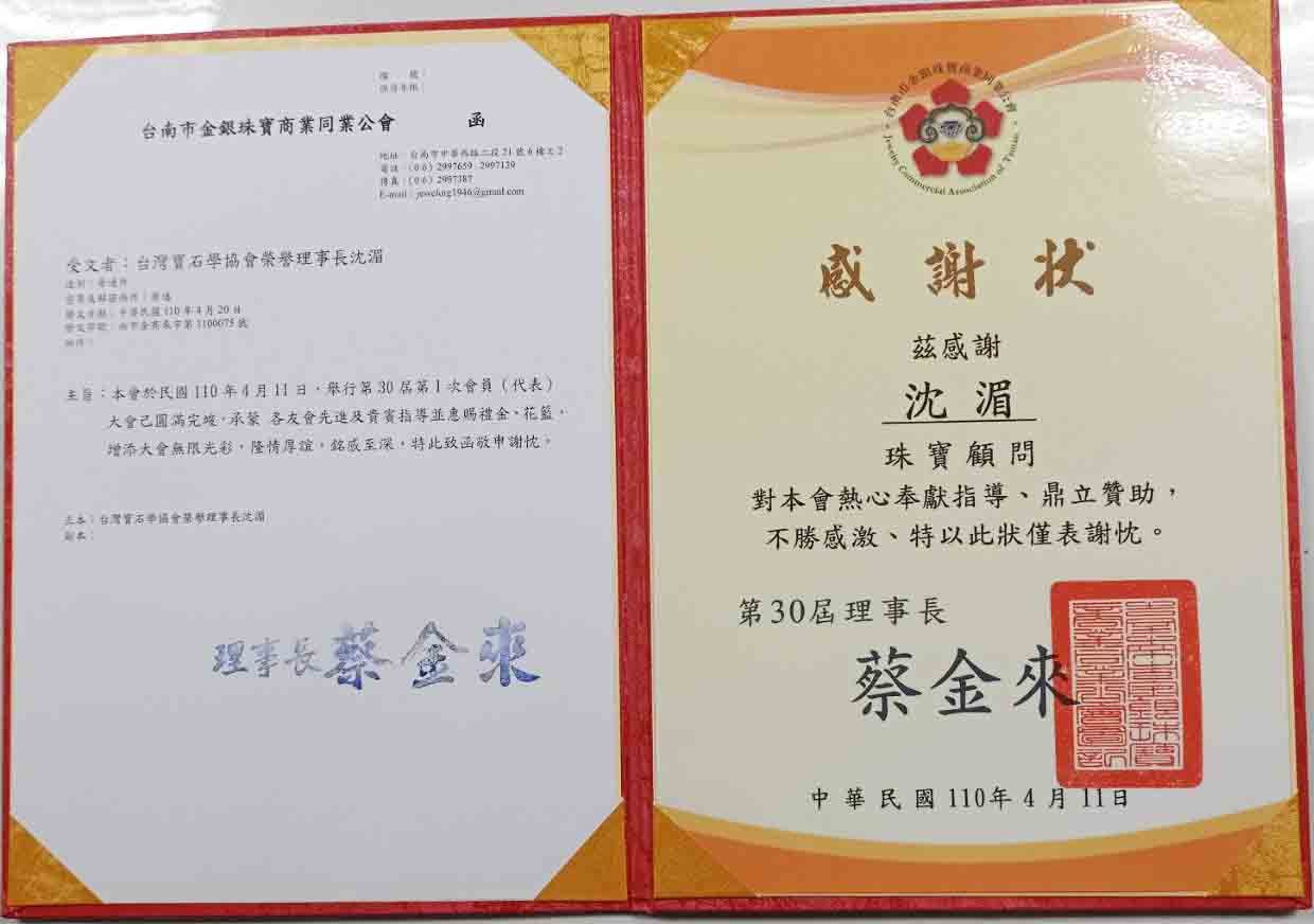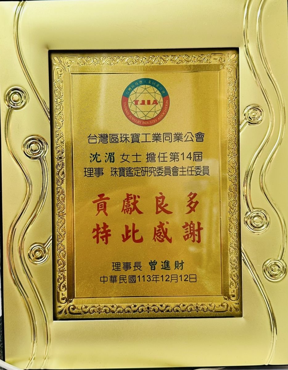 (2021-2024)擔任台灣區珠寶工業同業公會第14屆三年鑑定主委