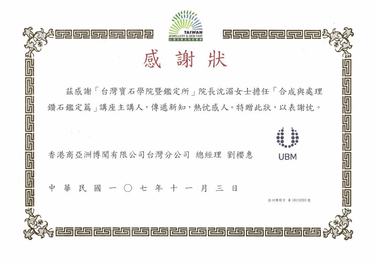 18’1102 沈老師UBM亞洲博聞臺灣珠寶展受邀演講