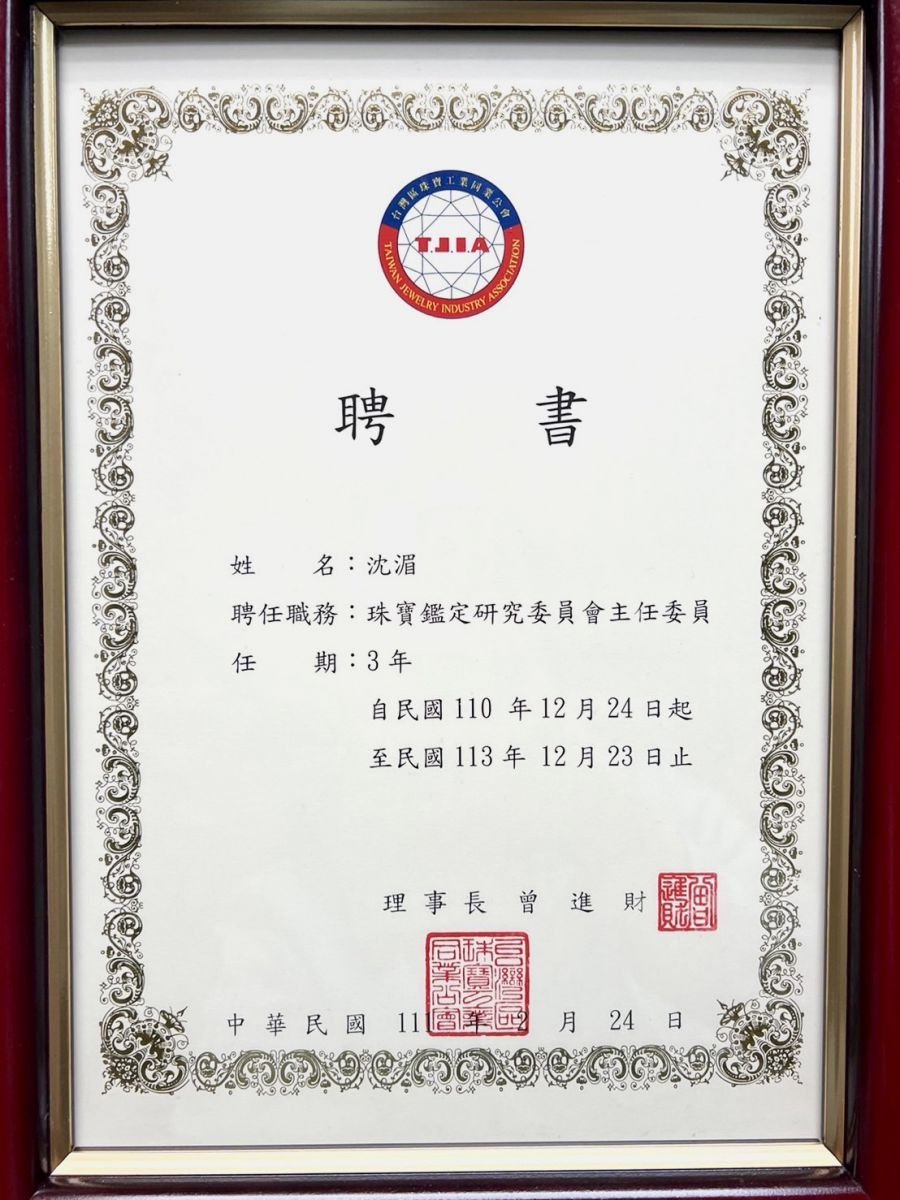2022台灣珠寶公會珠寶鑑定研究委員會主委(3年)