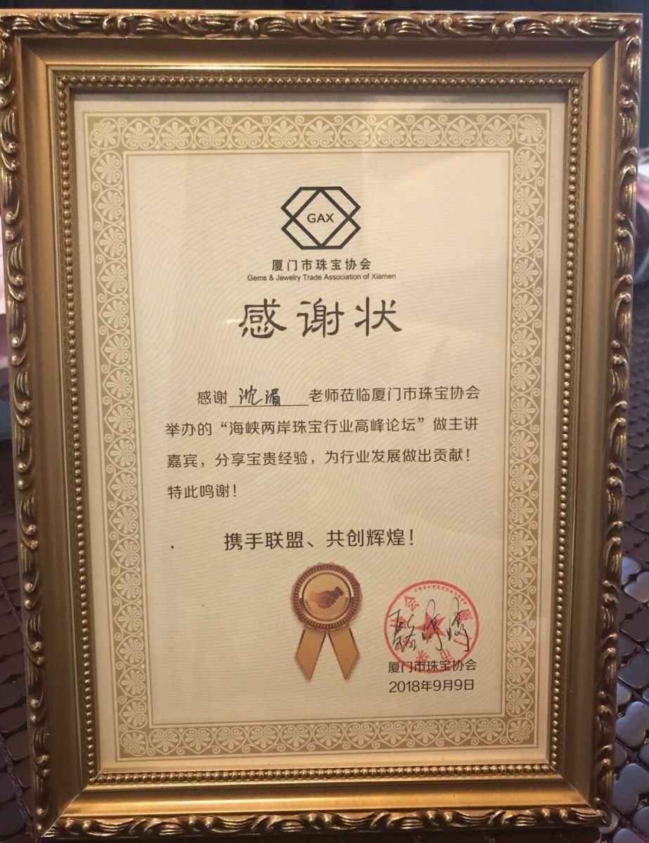在廈門擔任設計評委,頒贈和參與講座演講,謝謝廈門珠寶協會邀請!