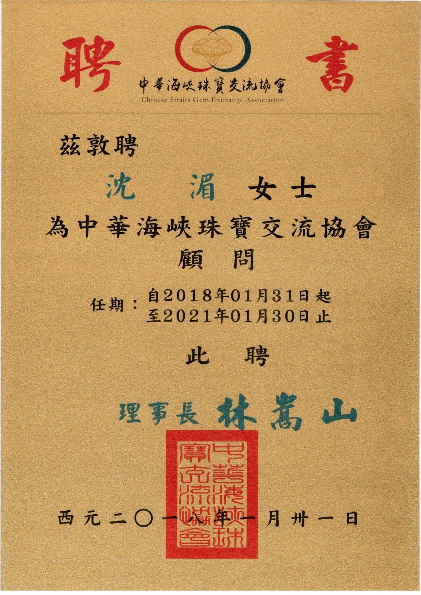 擔任台灣區珠寶工業同業公會第14屆三年鑑定主委(2021-2024)