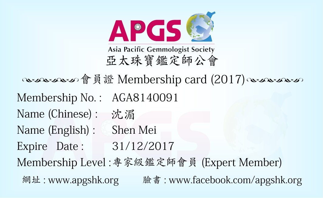 亞太珠寶鑑定師公會"珠寶專家"身份