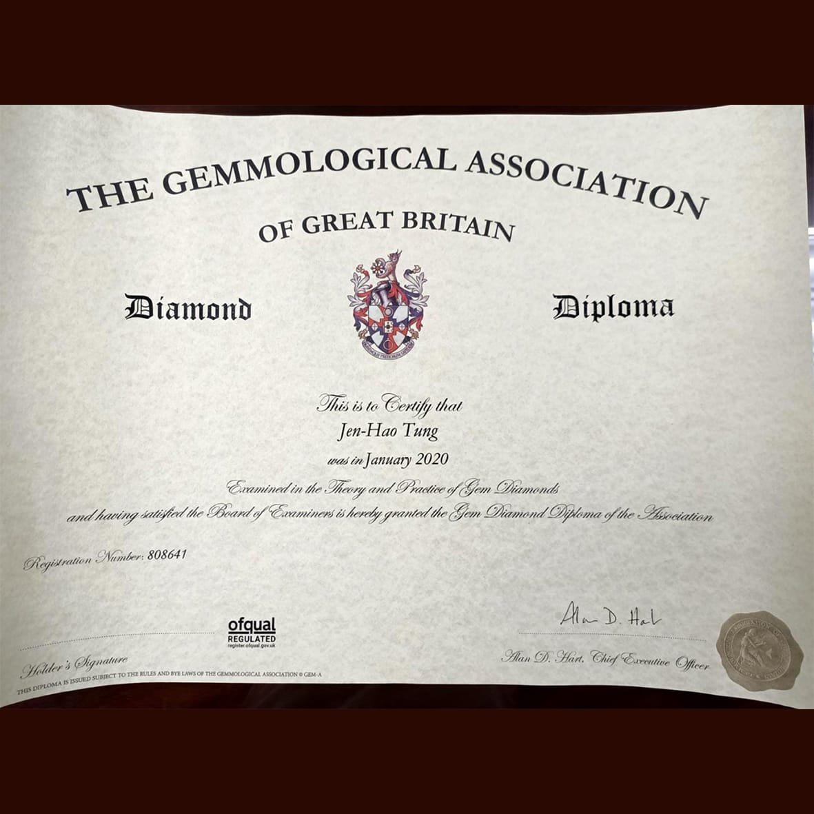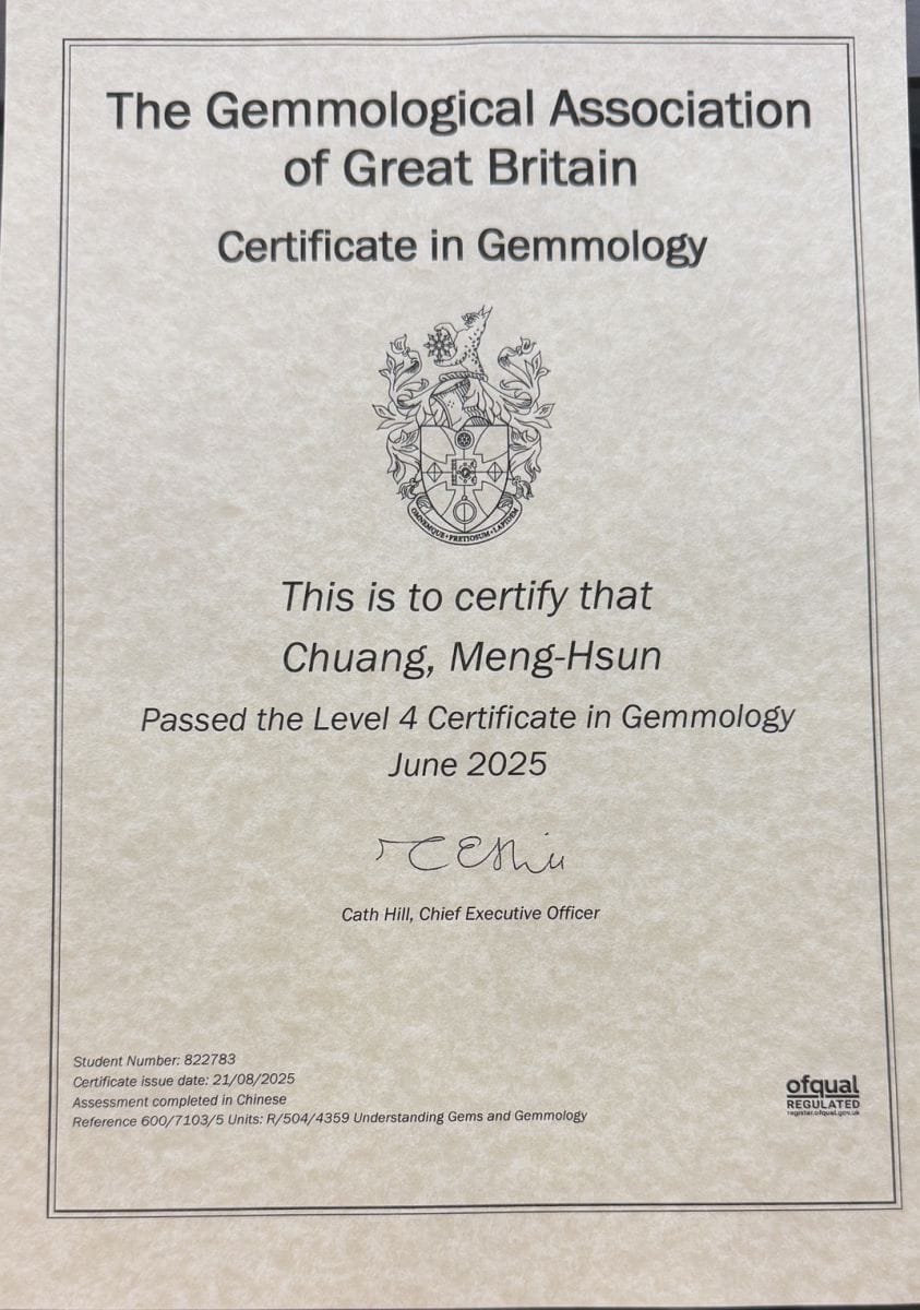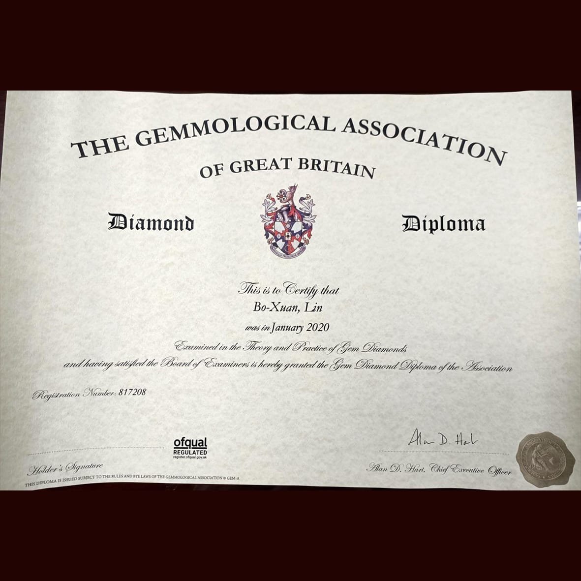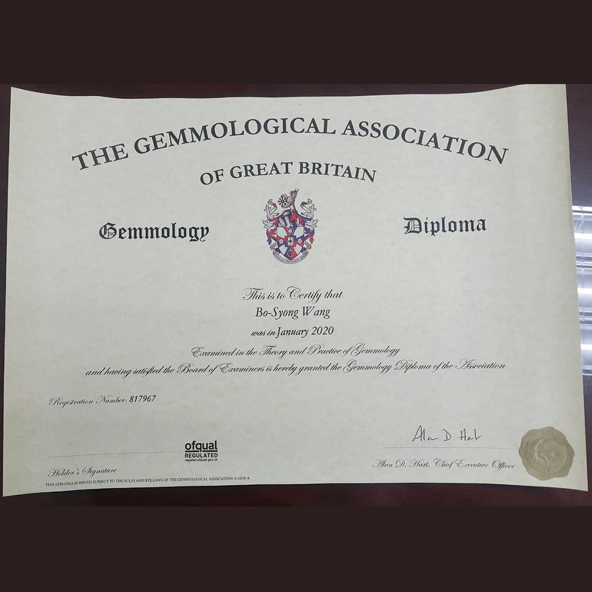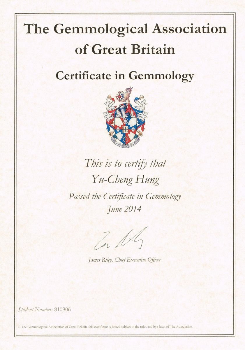 2022/11/09 遠赴英國London的Gem-A總部領證,恭喜張繼欄(No.815839)。