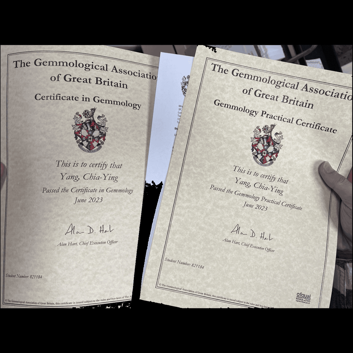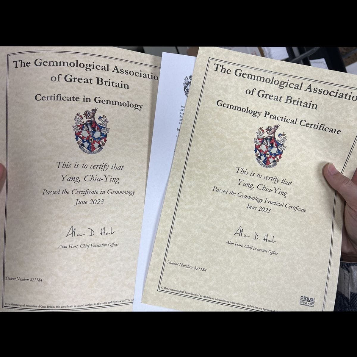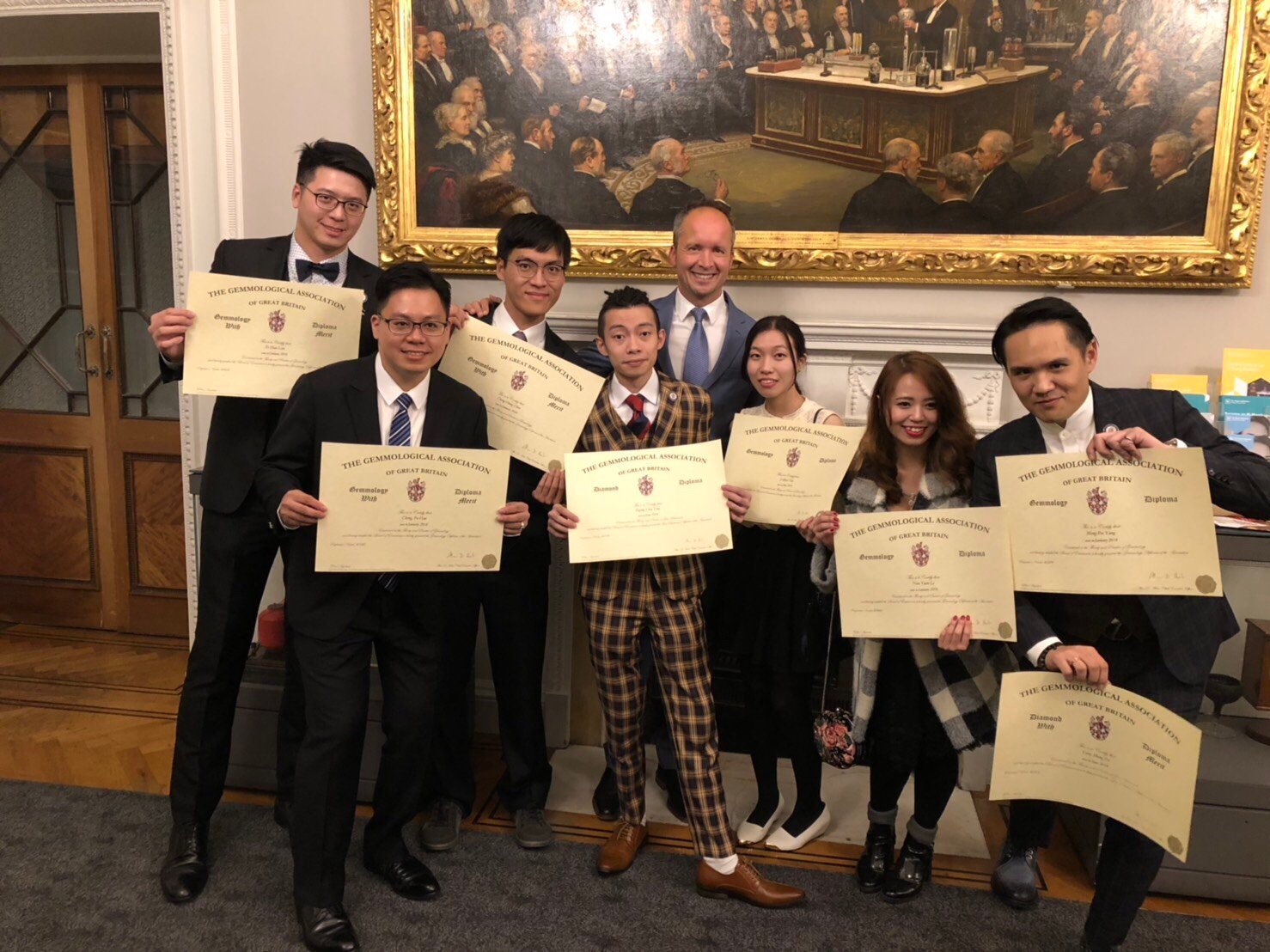 2018/11/05 遠赴英國London的Gem-A總部領證,恭喜楊孟陪,藍德涵,成柏濠,陳承鴻,籃盈麗,鄺展霆,葉姬妙(妙妙),還有黃聲文,欣怡,子語,Jessica,宗智,Sharon。恭喜大家。(4個Merit award)