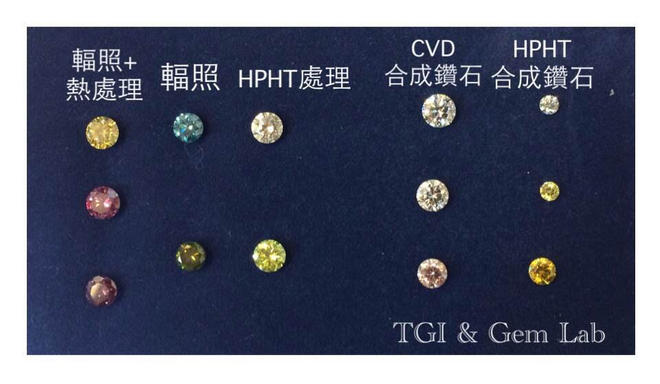 如圖均為天然彩色鑽石,摘錄自Gem-A DGA課本。