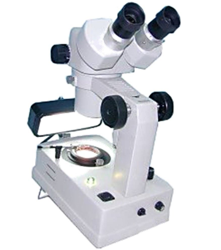 上圖為寶石學精密的顯微鏡,能將寶石中包裹體看得非常清楚。