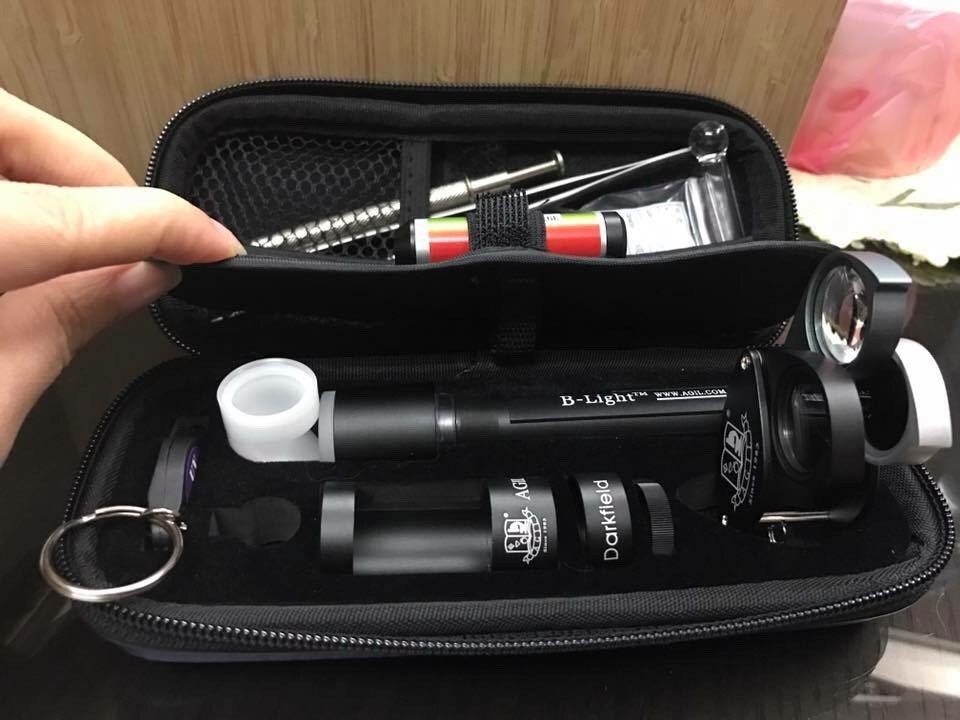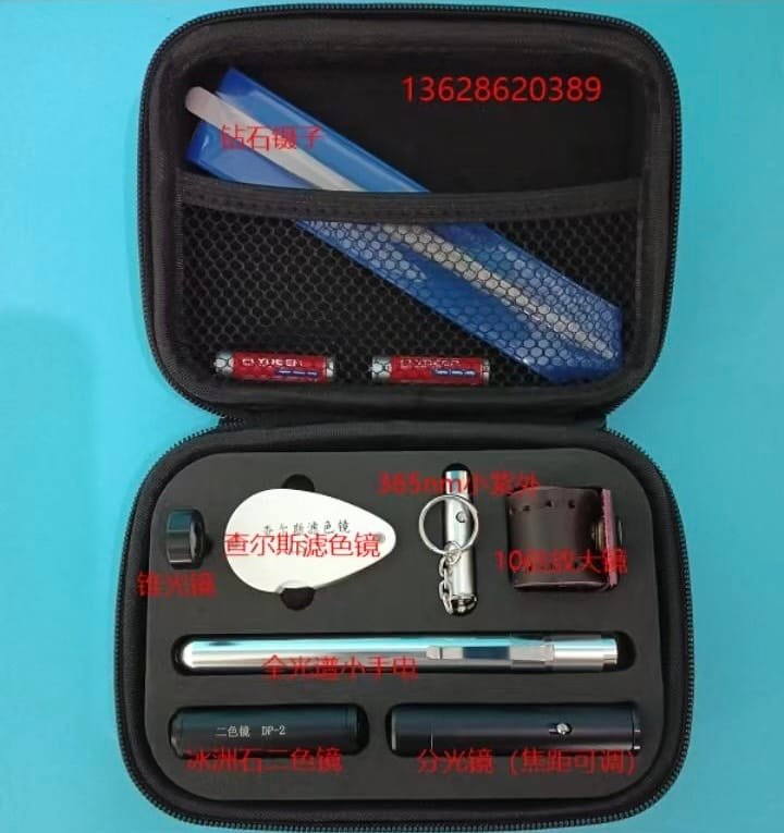A ,偏光鏡(專利), 如果沒有帶手電筒光源可以索性用手機的指示燈,可以看到cvd合成鑽石的黑、灰、白、十字紋。也可以配合 玻璃罎來觀看寶石的干涉圖像。